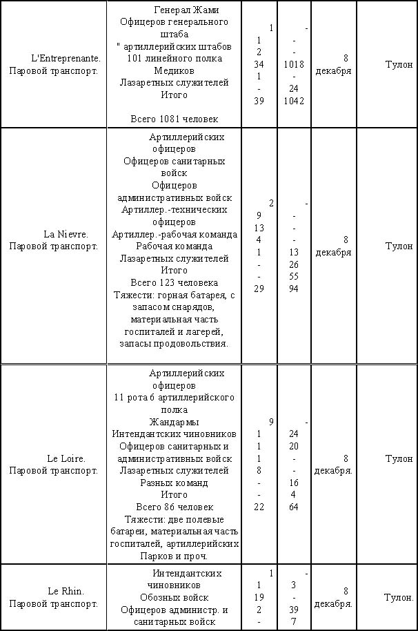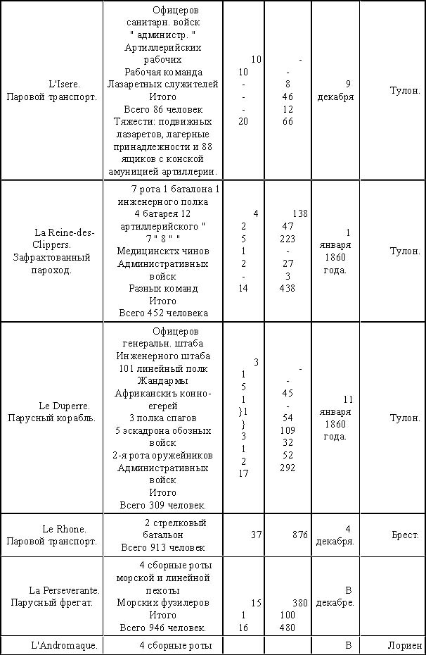 Следовательно сухопутные силы экспедиции в общей сложности достигали до 4094 человек, не считая прислуги.