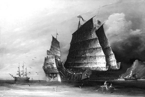 Корабли с опиумом в Линьтине. 1824 г. С картины У. Хаггинса