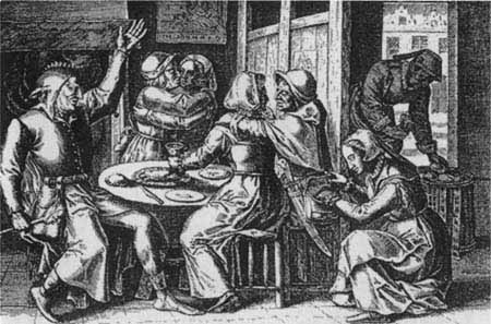 А. Хубертус. Крестьяне в публичном доме. Фламандская гравюра. XVI в.