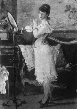 Жизнь же эта у куртизанки расписана довольно жестко, в ней все регулярно повторяется, она полна обязательств и целиком посвящена усилению того впечатления, которое куртизанка производит на окружающих. Обычно она встает в одиннадцать часов утра, завтракает, принимает ванну, принимает долго, очень долго. Она заботится о нежности и белизне своей кожи, для этого у нее под рукой молочко, кремы, духи. Между ванной комнатой и спальней есть дверь, она всегда открыта, благодаря чему в последнюю постоянно проникают соблазнительные ароматы. У куртизанки есть туалетный столик, он весь заставлен хрустальными флаконами с редкими запахами. После ванны она принимает парикмахера, мило болтает с ним о разных пустяках. Их общение прерывает служанка, она одевает свою хозяйку, это дело долгое и сложное. Шляпа с перьями, атласная накидка, туфли на каблуке, обнажающие изгиб ступни, красные губы, накрашенные черной тушью ресницы, облако из пудры, декольте — в таком виде она может отправляться в Булонский лес или на Елисейские Поля, а затем поехать в вернисаж или на премьеру в театр на бульвары, где будет плести свои интриги и раздавать приглашения на ужин.