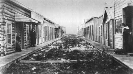 Улица "красных фонарей" в одном из городков на территории Юкона. США. 1899 г.