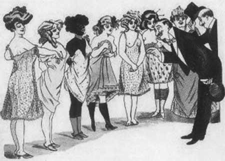 Разумеется, разделить на четкие хронологические этапы историю феномена, связанного с особенностями менталитета — вещи, по определению неопределимой, очень сложно, особенно если корни этого феномена, как политические, так и юридические и психологические, уходят в прошлое так глубоко. Но мы не устаем повторять, что хотя проституция и является древнейшей профессией, это вовсе не значит, что у нее нет истории. Взять, к примеру, период с 1830 по 1930 год — взлет и падение публичных домов. До тридцатых годов XIX века у борделя не было отличительной функции как таковой: будучи местом свиданий, он служил и рюмочной, и рестораном, и собственно публичным домом. Затем его роль места, где продаются удовольствия, стала более отчетливой, более яркой. А потом, после своего звездного часа, в восьмидесятые годы XIX века бордель несколько растерял свою привлекательность, свой эротический заряд, свою тайну. В Первую мировую войну бордель на некоторое время очнулся от летаргического сна, но тридцатые годы XX века он фактически пережить не сумел, так что в 1945 году после принятия закона Марта-Ришара, согласно которому держать бордели окончательно запрещалось, не произошло никаких народных волнений.
