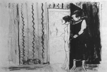 Посещение клиентами публичного дома. Сатирический рисунок. Конец XIX в.