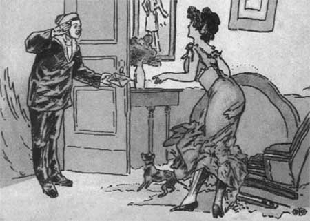 М. Пецилла. Казенная депеша (французский моряк, оплачивающий проститутку). Франция. Почтовая открытка. Начало XX в.