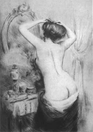 М. Роббе. Обнаженная, укладывающая волосы. 1906 г.