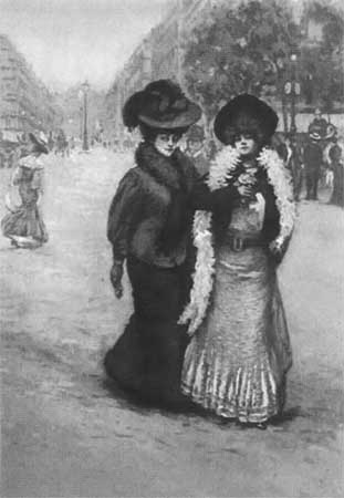 Тех счастливиц, которым удалось вырваться из безвестности и нищеты, можно пересчитать по пальцам. В семидесятые годы XIX века это удалось не более чем сорока куртизанкам, в то время как в Париже их тогда насчитывалось восемьдесят тысяч. У тех, кто не попал в эту группу избранных, нет за душой ни гроша, они голодают, они пытаются найти себе клиентов у театральных разъездов, выходят на панель или прибегают к услугам дам, которые сдают им внаем меблированные комнаты в "красных" кварталах вроде улицы Бреда. "В этой траченной временем девушке в запачканной одежде уже и не узнать недавнюю красавицу кокотку; от нее ничего не осталось в этой женщине, которая, стесняясь, переходит улицу в стоптанных башмаках, в волосы которой вплетен едва держащийся шиньон, руки которой стали красными от непривычной работы".