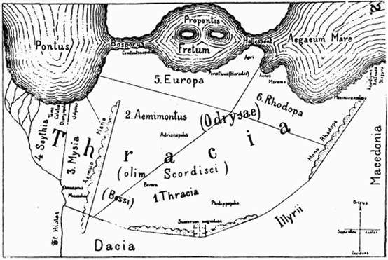 2. Карта фракийских областей по данным Аммиана Марцеллина (21, 8).
