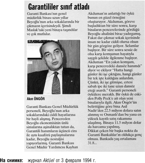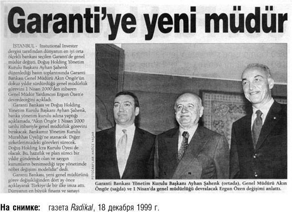 В истории банковского дела период с 1995 по 2000 г. был для Garanti временем небывалого расцвета. Под руководством Акина Онгора банк не только увеличился в размерах, но и достиг серьезных результатов. Разумеется, что в тот период мы с Акин-беем виделись еще чаще.