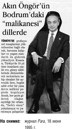 <…> Акин Онгор – настоящий лидер. Я никак не могу успокоиться, мне кажется, что в Турции так и не смогли в полной мере воспользоваться опытом Акин-бея, его личностными качествами, знаниями и гражданской позицией. Его уход из Garanti Bank был для нас большой потерей, но для Турции это могло бы стать большим приобретением. Его умение говорить, способность налаживать отношения, презентабельность и харизма могли бы пригодиться, когда требовалось представлять Турцию на международной арене. А лидерские качества Акин-бея могли быть использованы для изменения взглядов европейцев и американцев о нашей стране. Но этого не произошло. Между прочим, когда в 1997–1998 гг. в Центробанке происходил кризис в назначениях на руководящие должности, совершенно спокойно можно было назначить на главную из них Акина Онгора.
