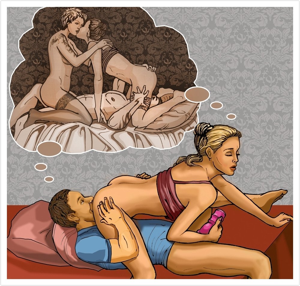 Если ей нравится минет, и она любит пофантазировать, то может даже представить себе секс с двумя мужчинами, второй из которых находится сзади.