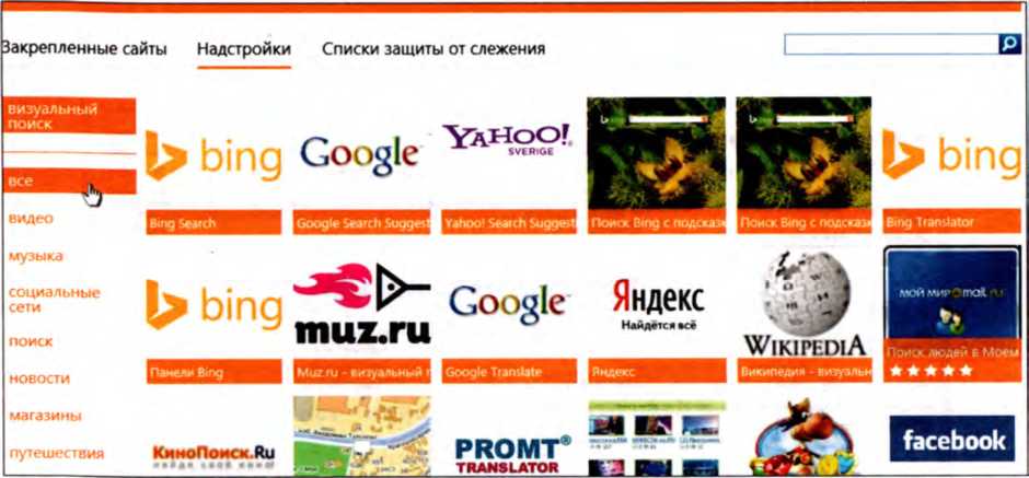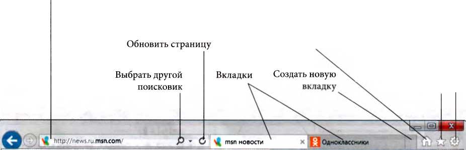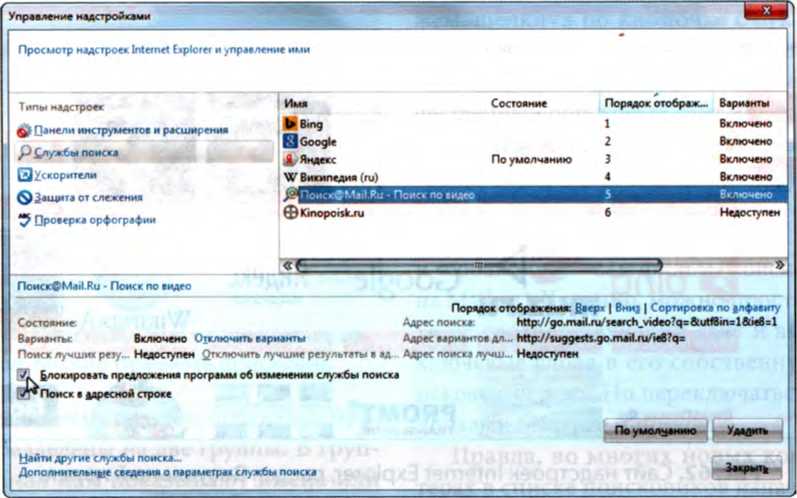 В Internet Explorer 8 кнопки такой нет (на ее месте располагается кнопочка поиска на текущей странице). Тут надо действовать иначе: щелкнуть по галочке вершиной вниз, которая расположена правее поисковой строки, и запустить команду Найти другие службы