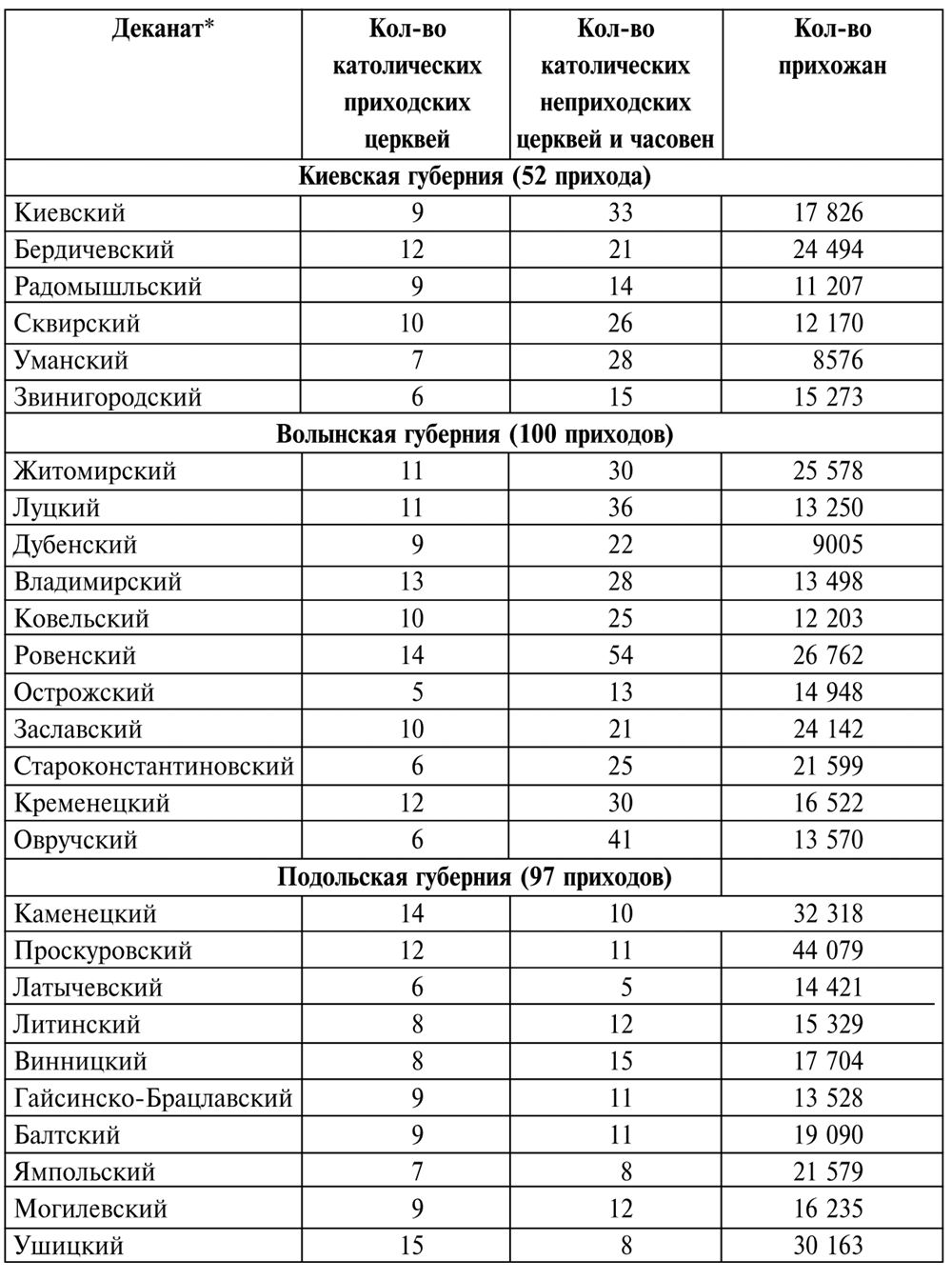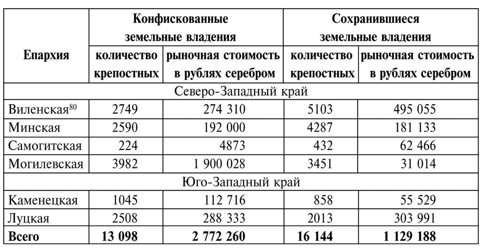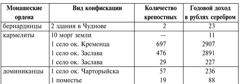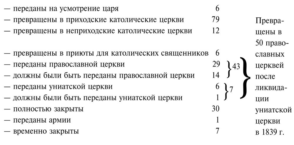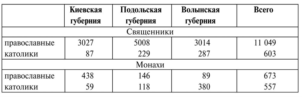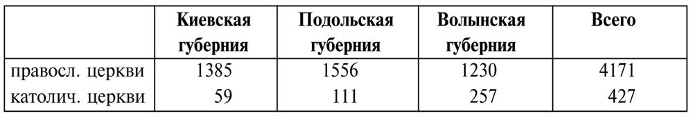 Разнообразие пейзажа в полном смысле этого слова обуславливалось появлением малочисленных и бедных церковных построек, не соответствующих количеству духовного сословия и верующих. Большая часть крестьян были православными, их число увеличилось особенно в результате решительного наступления России на униатство, начатого после второго раздела Речи Посполитой. Несмотря на это, губернаторы ежегодно докладывали, что, за исключением нескольких крупных монастырей, остальные деревянные православные церкви находятся в плачевном состоянии, в то время как в каждом польском поместье имеется содержащийся в хорошем состоянии римско-католический костел. В упоминаемом выше рапорте по Волыни приводятся данные по духовенству за 1815 г., согласно которым православных священников было 6652, униатских – 1583, римско-католических – 1507, а лютеранских пасторов – 3. Отметим, что религиозные конфликты на территории Правобережной Украины в этот период, несомненно, заслуживают отдельного исследования.