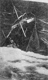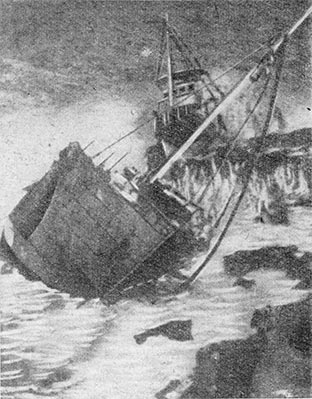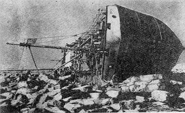Но вот однажды опытный капитан Рескю, предвидя особенно жестокий шторм, решил не рисковать и приказал команде перебраться на борт китобойца. Рескю недалеко от берега оставили на якорях. Опасность на этот раз действительно оказалась реальной. Волны и ветер безжалостно разделались со старым Рескю. Сначала под ударами трех огромных волн, обрушившихся на палубу, сломались мачты. Затем судно сорвало с якорей и понесло к берегу. Полуразрушенный корабль оказался выброшенным на мель.