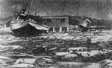 Удивительная история связана с большим парусным кораблем Морская птица. Ранним солнечным утром 1850 г. судно появилось у побережья американского штата Род-Айленд близ города Ньюпорт. Люди, собравшиеся на берегу, видели, что корабль идет под всеми парусами к рифам. С берега прозвучало несколько предупреждающих выстрелов, но судно продолжало идти вперед, как бы пренебрегая угрожавшей ему опасностью. Люди замерли в ожидании катастрофы. Но произошло неожиданное: когда до рифов оставалось несколько метров, огромная волна подняла парусник и перенесла его на сушу. При этом судно не получило никаких повреждений.