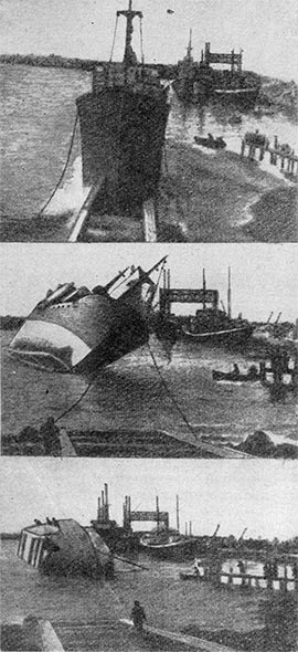 Очистка дна от затонувших судов производилась с помощью взрывчатых веществ. Естественно, что при подрывах этих судов и дроблении их на обломки не удалось избежать загрязнения вод пролива нефтью.