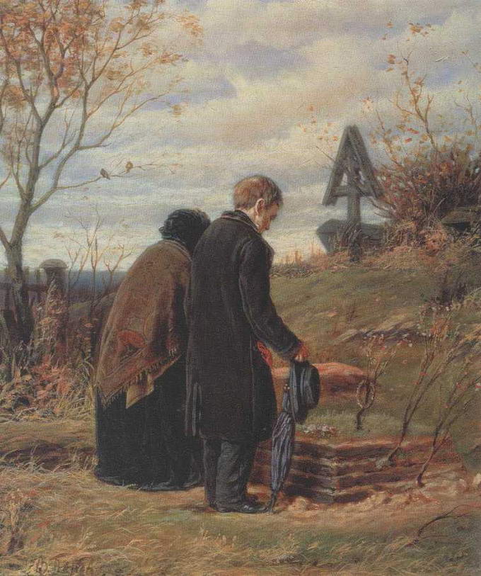 Первой работой Перова, написанной после возвращения в Россию, стала картина Проводы покойника. Если ранние произведения Перова - это обличительный документ с подробным перечислением свидетельств существующего зла, то пафос Проводов покойника - не уличение во зле, а сострадание его жертвам. Настроение картины - немая, бесслезная скорбь бедняков, привычных к несчастью.
