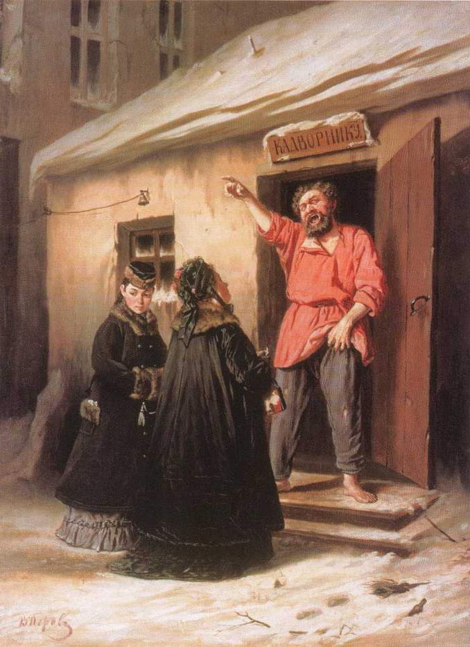 Первая жанровая картина Перова Приезд станового на следствие появилась на выставке Академии художеств в 1858 году. И в том же году Некрасов написал знаменитое стихотворение Размышления у парадного подъезда: