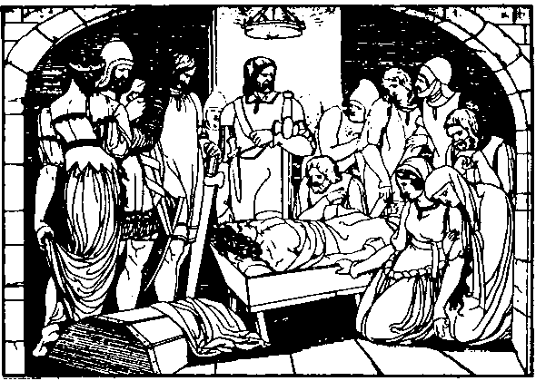 В это время подошел король Этцель, ласково приветствовал маркграфа и стал было расспрашивать об исходе войны и о своих сыновьях, но, увидев печальные лица, отшатнулся в ужасе.