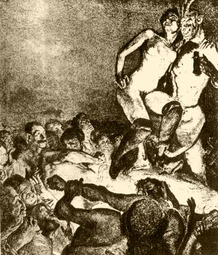Понятие карикатуры здесь, конечно, чисто техническое и понимается в смысле средства. И в этом смысле мы и говорим: большинство всех эротических произведений носит характер карикатуры. Карикатура — произведения Ювенала, диалоги Аретино, писания маркиза де Сада, мемуары Казановы и т. п.; карикатуры — большинство эротических древних изображений, многочисленные эротические картины Ренессанса, все, что японцы дали нам в области эротического искусства, все, что в области эротики создал Фелисьен Ропс, и т. п. Повсюду потенция, т. е. все, что так или иначе связано с проявлением животной любви, а в первую очередь и половые органы мужчины, — все всегда чрезмерно преувеличено. Но мы утверждаем: это явление есть внутренняя необходимость и, как естественный закон, вытекает из всей тенденции эротики.
