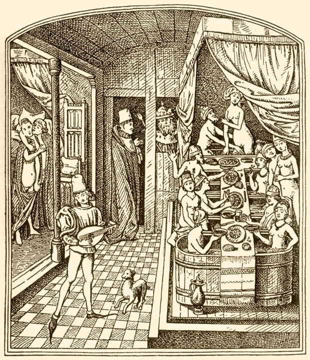 Купальная жизнь. Сатирический рисунок из средневековой рукописи.