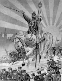 Первый Георгиевский кавалер — герой Козьма Крючков. Литография 1914 г