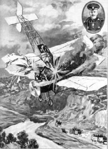 21–1. Геройский подвиг и гибель летчика штабс-капитана П. Н. Нестерова. Литография 1914 г.