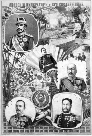 28–1. Японский император и его сподвижники. Литография 1904 г.