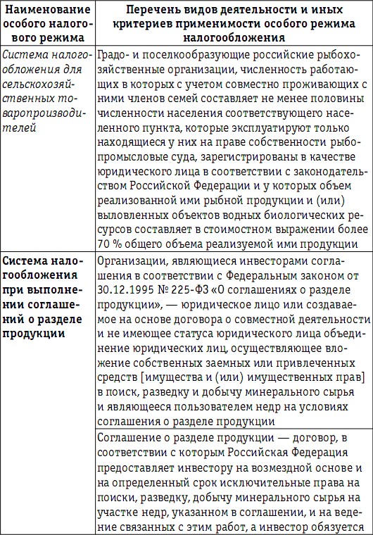 – виды деятельности, для которых данный налоговый режим предназначен (или виды деятельности, для которых исключается его применение);