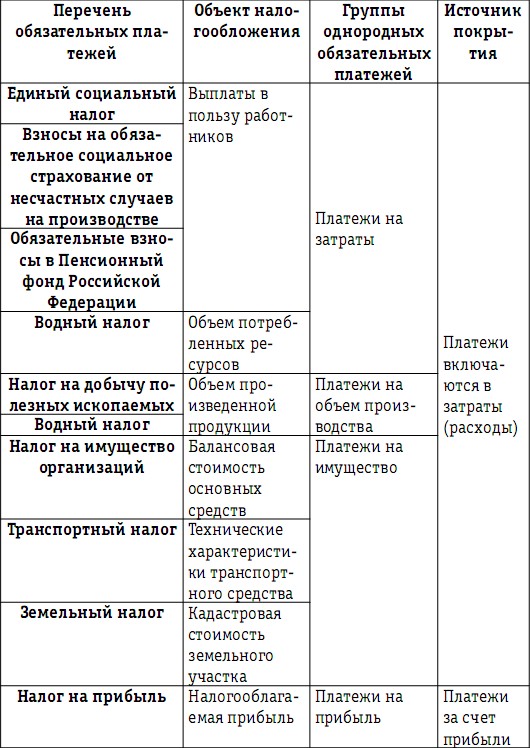 В табл. 2 приведены сравнительные перечни обязательных платежей для различных налоговых режимов.