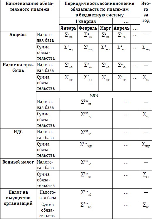 – суммы начисленных обязательных платежей к выплате в течение отчетного года, налогоплательщиком (плательщиком) которых является предприятие в соответствии с вариантом налогового поля;