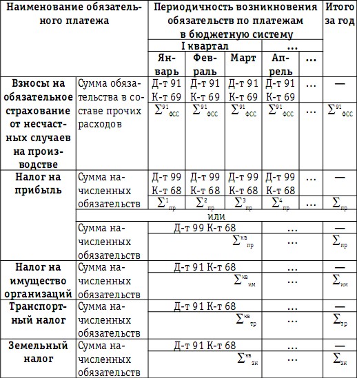 – соответствующие бухгалтерские счета, на которых отражаются так называемые места возникновения обязательных платежей в бюджетную систему, то есть операции и/или имущество, являющиеся объектами налогообложения;