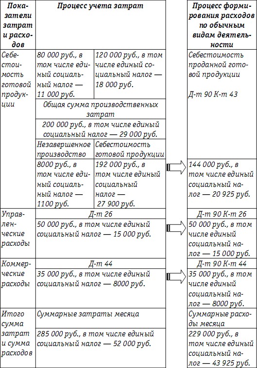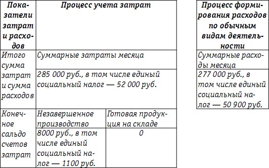 Например, единый социальный налог, исчисленный на сумму заработной платы работников основного производства, отражается в качестве одной из статей затрат при формировании производственной себестоимости продукции (работ, услуг). От положений учетной политики организации, определяющих состав используемых затратных счетов и порядок их ежемесячного закрытия, зависит, в каком отчетном периоде и в какой сумме начисленный единый социальный налог повлияет на финансовый результат. Кроме того, важное значение имеют и особенности хозяйственной деятельности предприятия, такие как наличие незавершенного производства и остатков готовой продукции на складе.