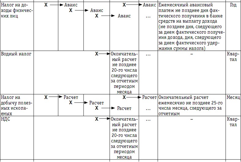 В пределах календарного года периодичность бухгалтерских операций начисления налогов определяется налоговым законодательством, связана с понятиями налогового и отчетного периодов для целей налогообложения и зависит от порядка исчисления каждого налога, установленного соответствующей главой НК РФ. Налоговый период является «конечным» периодом для определения окончательной величины обязательств предприятия по конкретному налогу. Длительность налогового периода установлена для каждого налога. Минимальный налоговый период равен месяцу, максимальный налоговый период составляет календарный год, что совпадает с длительностью основного отчетного периода в бухгалтерском учете. По итогам года можно получить сопоставимые величины годового финансового результата и окончательной суммы всех налогов, возникших за год ведения хозяйственной деятельности.