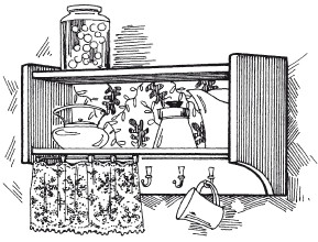 Все вырезанные детали покройте белым акриловым лаком. На стене ниши и разделительной стенке установите опоры, зафиксировав их дюбелями и винтами. Наложите на укрепленные опоры полки и тоже привинтите их. Монтаж значительно ускорится, если заранее просверливать отверстия для винтов.