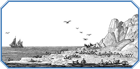 Закончив грузовые операции на Камчатке, моряки двинулись дальше. Несколько дней ушло на описные работы у Командорских островов, острова Беринга, острова Медный. Нанеся их на карту, шлюп пошел дальше к востоку – вдоль Алеутской цепи к берегам Русской Америки. У острова Кадьяк[4] встретилось множество китов, которые и ночью не оставляли корабль, «бросая воду столбами и испуская при этом какой-то странный, громкий шум, подобный вздохам». Это было первое знакомство с богатствами Русской Америки. Воды здесь кишели китами, сивучами, тюленями, касатками, разными рыбами. В лесах Кадьяка в изобилии водились медведи, лисицы, горностаи. Прогуливаясь по острову, наблюдая природу и знакомясь с бытом местного населения, юный мичман Врангель не подозревал того, что через несколько лет он вернется сюда правителем всех русских владений в Америке и сыграет в истории Российско-Американской компании выдающуюся роль.
