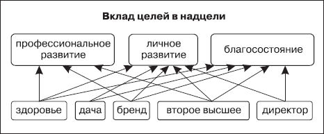 Проектная/функциональная система целей. "Функциональная" система целей (по аналогии с функциональной системой управления фирмой) — принятый в классическом тайм-менеджменте способ структурирования деятельности, при котором она разбивается на ключевые области; в них ставятся цели; цели разбиваются на задачи и мероприятия. "Проектная" система целей предполагает разделение модели деятельности на абстрактный (ключевые области, надцели, "дерзкие цели") и конкретный (задачи, проекты) уровни, не находящиеся в жесткой взаимосвязи (проекты вносят вклад в достижение надцелей, движение в задаваемом ими направлении, но не являются элементами декомпозиции надцелей).