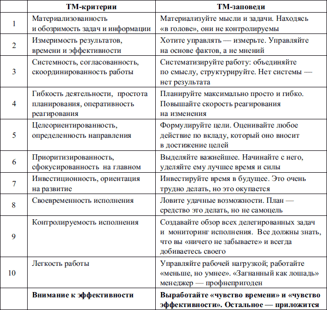 Главная беда классического тайм-менеджмента состоит в том, что большинство западных экспертов в этой области занимаются только тайм-менеджментом, специализируются на этой теме и ни на чем другом. Таким образом, они знают «почти все о почти ничем». В результате 90 % издающихся сейчас книг по тайм-менеджменту — это более или менее удобные изложения все тех же немецких и датских методов двадцатилетней давности с некоторыми вариациями, но не более того.