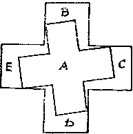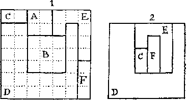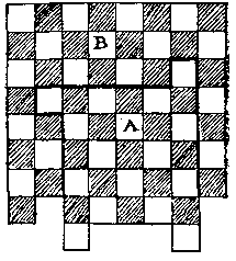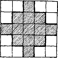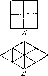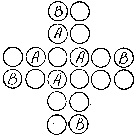 482. На рисунке показано одно из четырех решений данной головоломки с 11 (нечетным числом) спичками. Если вы сначала окружите какой-нибудь внешний ряд вроде A, то затем сможете окружить в любом случае квадрат B и завершить решение, затратив всего 11 спичек.