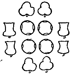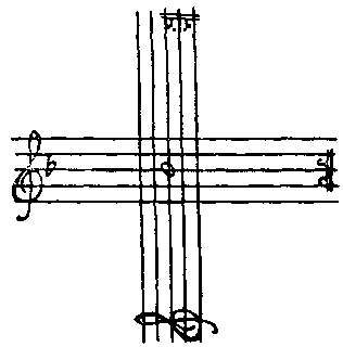 502. Несомненно, правильным решением этой головоломки является BACH (Бах). Если вы начнете поворачивать крест, то получите последовательно В-бемоль (ключ соль), А (теноровый ключ), С (альтовый ключ) и В натуральное (ключ соль). По немецкой терминологии В-бемоль называется «В», а В натуральное «Н», что и дает BACH.