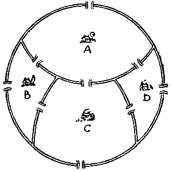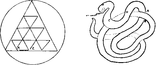 509. Мы не можем с уверенностью сказать, какую часть змеи должна проглотить соперница, чтобы ее можно было считать погибшей. Однако мы можем утверждать, чего заведомо не произойдет: змеи не будут заглатывать друг друга до тех пор, пока обе не исчезнут! Но где в действительности оборвется «процесс заглатывания», сказать трудно.