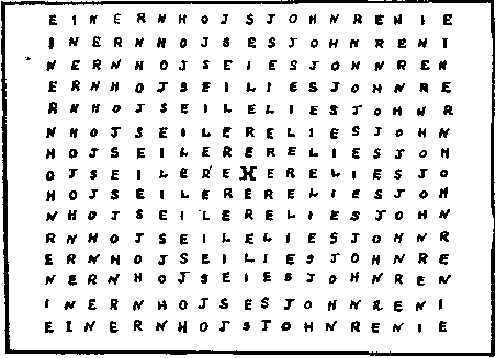 519. Молодому математику нужно было просто перевернуть листок и посмотреть его на свет или поднести к зеркалу; при этом он немедленно понял бы, что послание его невесты гласило: «Kiss me, dearest» («Поцелуй меня, дорогой»).