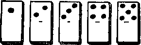 466. Четыре костяшки, изображенные на рисунке, удовлетворяют нашим условиям. Можно обнаружить, что, суммируя группы очков, непосредственно прилегающие друг к другу, удается получить любое число от 1 до 23 включительно.