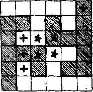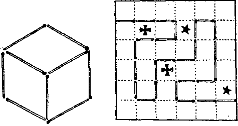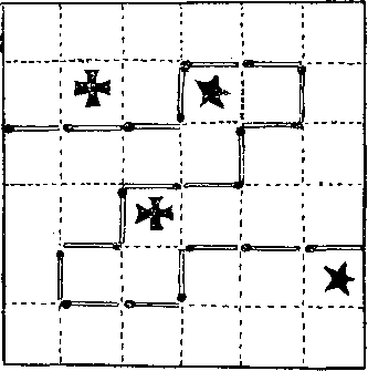 489. На рисунке показано, как расположить 26 спичек так, чтобы они разделили чертеж на две части одинаковых размеров и одной формы, из которых одна содержит две звездочки, а другая — два крестика.