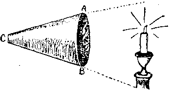 513. Трюк состоит в том, что воронку нужно опускать до тех пор, пока пунктирная линия CA (см. исходный рисунок) не пересечет пламя свечи. Любая попытка задуть свечу, располагая пламя по центру отверстия, обречена на неудачу.