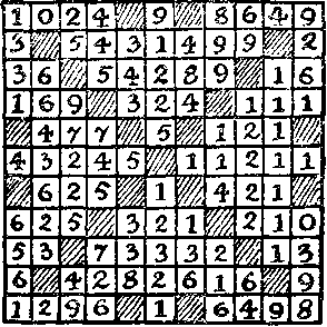 477. Расположите второй столбик (на нашем рисунке) под первым, а третий под вторым (мы разделили один столбик на три части для удобства печати), и вы получите искомое решение.