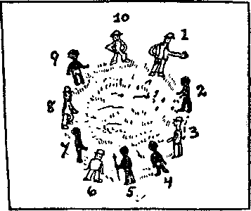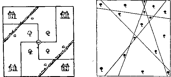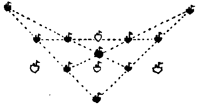 овцы. Следовательно, для 10 овец необходимо взять 12 жердей. Если вы расположите эти жерди в виде квадрата, как показано пунктиром, то огородите участок только для 9 овец.