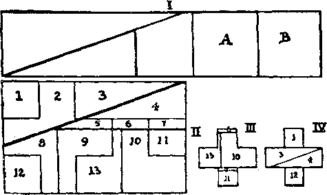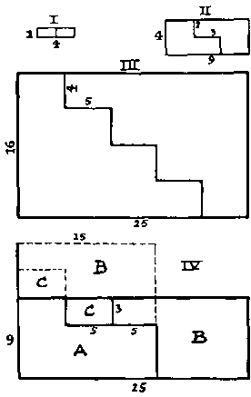495. В коробке было 36 спичек, из которых мой друг мог составить треугольник (17, 10, 9) площадью 36 квадратных дюймов. После того как 6 спичек было использовано, оставшиеся 30 образовали треугольник (13, 12, 5) площадью 30 квадратных дюймов, а использовав еще 6 спичек, он смог из оставшихся 24 составить треугольник (10, 8, 6) площадью 24 квадратных дюйма.