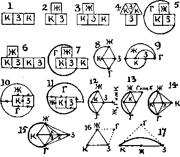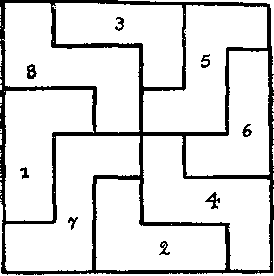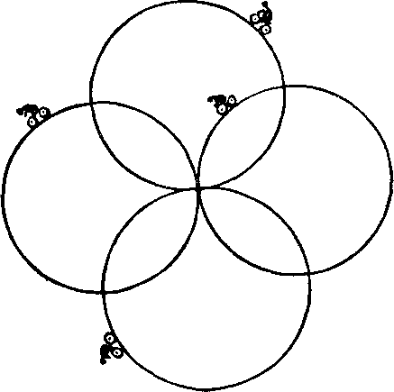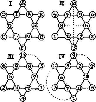 [Относительно задач такого типа, известных под названием кадрилей, см. Е. Lucus, Rґecrґeations Mathematiques, 2, 52-63, и работу Wade E., Philpott «Quadrilles» в журнале Recreational Mathematics Magazine, N 14, January — February 1964, pp. 5-11. — M. Г.]