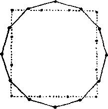 480. Если загородка имеет вид прямоугольника, то его площадь будет тем больше, чем ближе он к квадрату. Но самая большая площадь получается, когда жерди расположены в виде правильного многоугольника, а если это можно сделать несколькими способами, то максимальной будет площадь у того многоугольника, стороны которого состоят всего из одной жерди. Так, в приведенном ранее примере площадь шестиугольника была больше площади треугольника. Изображенный на рисунке правильный двенадцатиугольник ограничивает наибольшую (в случае 12 жердей) площадь, достаточную для примерно 11⅕ овцы. Одиннадцатью жердями можно огородить участок, достаточный только для примерно 9