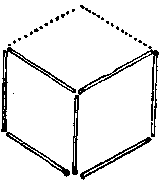 486. Вы должны спрятать одну спичку внутри коробка, как показано на рисунке пунктирной линией, причем ее головка должна только-только зайти за край внутренней части коробка. Закрывая коробок, вы проталкиваете эту спичку вперед ногтем большого пальца (что можно, потренировавшись, делать незаметно), и она падает на свое место. Разумеется, ни одна из первоначально показанных спичек не перевернется, поскольку это невозможно, но никто никогда не пересчитывает спички.